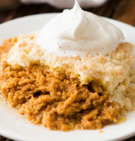 Instead of serving pumpkin pie for the holidays, try this easy to prepare and delicious pumpkin pie dump cake. Serve with fresh whipped cream and a sprinkle with a little cinnamon sugar.