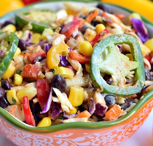 Make a colorful southwest flavored coleslaw for your family at home or bring it to your next gathering. It's packed with fresh, crisp veggies, like corn, bell peppers, jalapenos, and black beans, with seasonings like chili powder and cumin all tossed in t