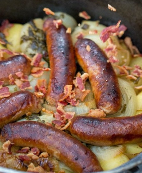 It's not too late to enjoy this amazing Irish comfort food. Fall just might be the perfect time to go camping and make this wonderful dish. It's a savory Irish classic made with potatoes, onions, bacon and sausages with a little chicken broth and beer thr