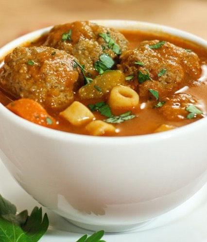 Colder weather will soon be upon us and so hearty soups are needed to comfort us on those chilly days. This one is full of flavor from the seasonings and cooking the meatballs in the beefy tomato broth. It's also loaded with fresh veggies and pasta and ca