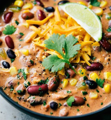 You will have a hard time waiting for this creamy taco chicken chili to finish cooking. It is a simple dinner to prepare because it is simply just dump the ingredients into the crockpot and cook. Serve with your favorite taco garnishes and enjoy!