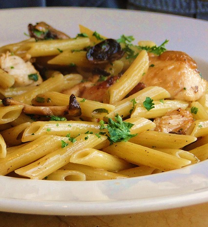 Instead of driving to the restaurant to order this dish, why not fill you own home with its wonderful aroma and make it yourself? It's full or hearty shitake mushrooms, sweet Madeira wine, penne pasta, garlic and red onion all in a rich and creamy sauce.