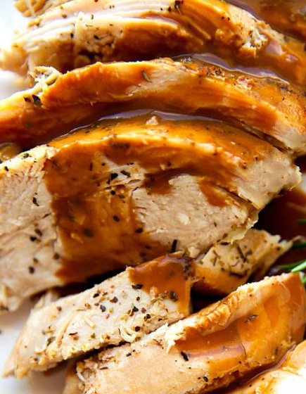 If you're having a smaller Thanksgiving feast, but still want the traditional turkey, try this slow cooker turkey breast. It will come out super moist and tender and perfectly seasoned. Serve it with an easy gravy made from the drippings.
