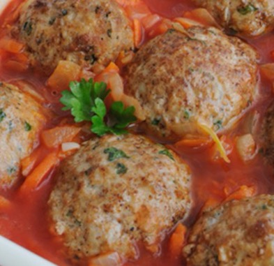 Place meatballs in a ovenproof casserole dish; pour the tomato sauce over the meatballs; if desiring Mozzarella cheese, add it now. Top with chopped parsley.
