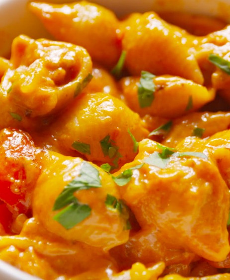 Simmer until shells are al dente and most of the liquid is absorbed, about 20 minutes.
