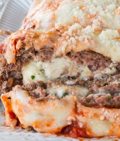 Enjoy your meatloaf inspired by lasagna but without the lasagna noodles. It will satisfy your lasagna cravings with ground beef, three cheeses, and tomato sauce. It's a comforting dish that your family will love.