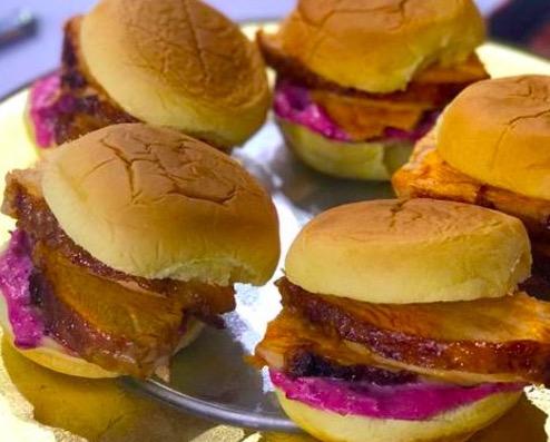 Spice up those Thanksgiving leftovers with these wonderful sliders. They are sweet and spicy with a spicy chili paste, fresh cranberry aioli, honey, turkey slices on sliders rolls.