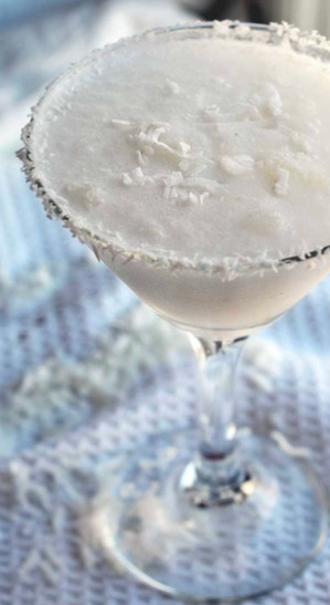 **To make a more fancy drink, coat the rim of the chilled glass with finely shredded coconut.