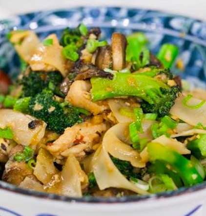 12 oz. dried wide rice noodles (softened according to package directions) or 1 1/2 lb. fresh wide rice noodles