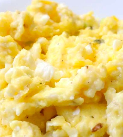 Prepare your scrambled eggs with cottage cheese instead of milk for a breakfast lower in fat and higher in protein. The end result is creamy, fluffy scrambled eggs.
