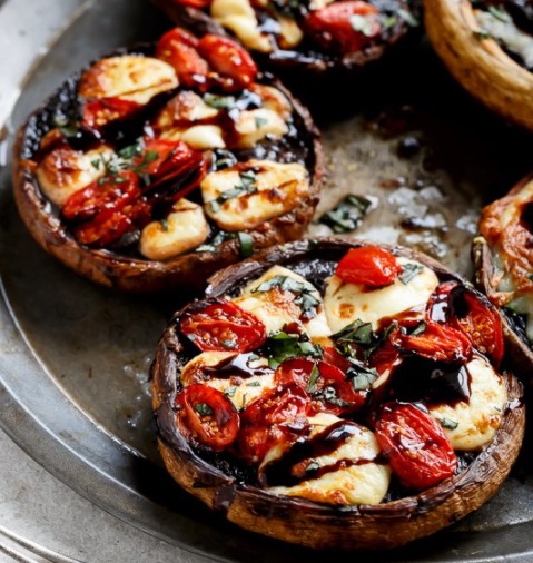 *Tip: Mix mozzarella pieces and grape tomatoes with a little extra virgin olive oil before putting them in the mushrooms.