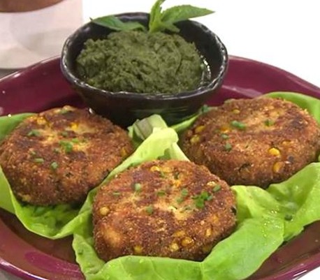 No meat Fridays? Serve these spicy crab cakes and make them really special with a mint chutney. They are made with crab meat, chiles, coconut and veggies and fried until brown and a bit crispy.