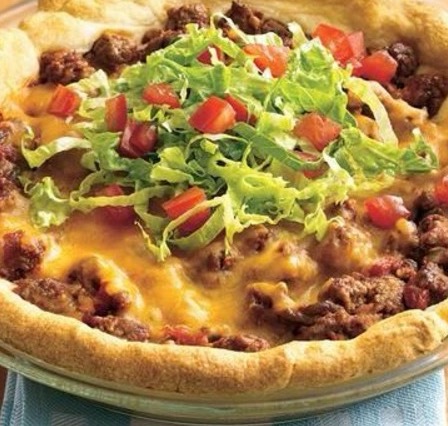Spoon meat mixture into the crust-lined pan/pie plate; sprinkle with Cheddar cheese.