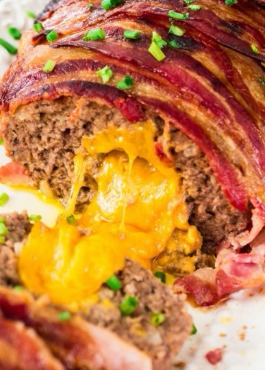 Bacon Wrapped Cheese Stuffed Meatloaf