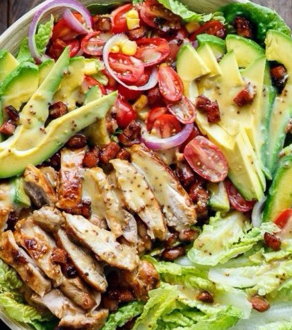 Honey Mustard Chicken, Bacon and Avocado Salad