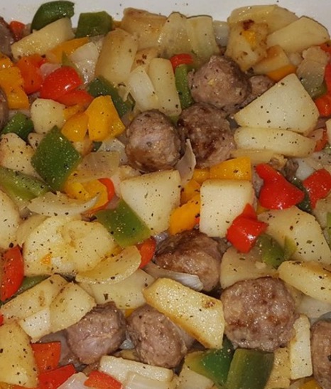 Make this Italian dish for your hungry family. It's comfort food at its best, and is a whole meal with sausage, potatoes and vegetables. Serve with a salad and a crusty bread.