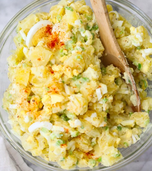 This might just be the best ever potato salad. Much of the wonderful taste comes from the Miracle Whip. If you are not a Miracle Whip fan, try half Miracle Whip and half mayonnaise.