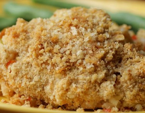 Bake 30 minutes; remove foil; top with breadcrumbs; bake an additional 10 minutes. Or, bake 30 minutes; let cool completely; cover; freeze for up to 2 months.