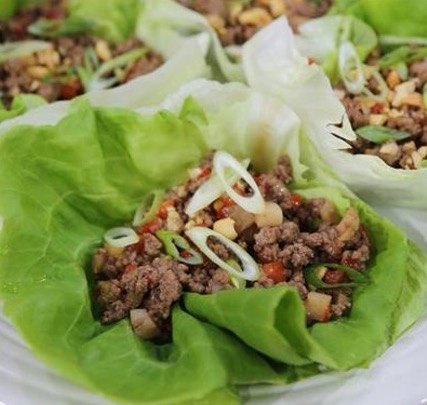 Serve these flavorful and healthy lettuce cups when you are wanting to cut back on carbs. They make a great appetizer, light lunch or even dinner. If you would like to make them even healthier, swap out the ground beef with ground turkey, chicken or even