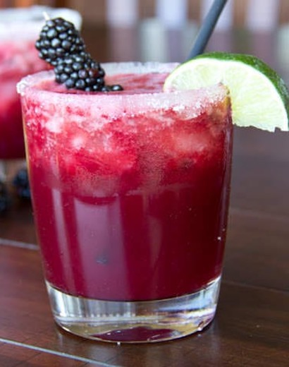Serve over ice. Garnish with the remaining lime wedges and blackberries.