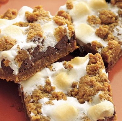 Why wait for a campfire to make this yummy dessert? Make it anytime that you want in your oven. It starts of course, with a graham cracker crust that is topped with layers of chocolate, marshmallow creme and mini marshmallows that is finally topped with m