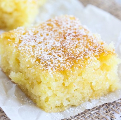 Sprinkle with powdered sugar. Cut into squares. Serve.