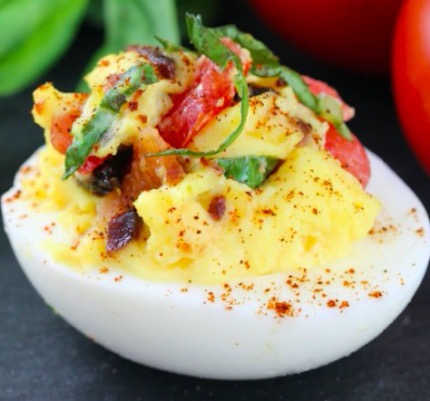 Make an appetizer that's similar to a BLT, but in this recipe, the lettuce is replaced with basil. They just may be the best deviled eggs ever and the secret is the candied bacon.
