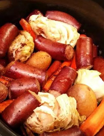 Turn your slow cooker into a steamer to make a wonderful smoked sausage dinner with meat, potatoes and veggies. It only requires 5 ingredients and a few hours of time to make the perfect, delicious and easy meal.