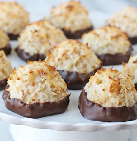 These macaroons will be your favorite cookie, especially if you are a coconut lover. They are golden and crispy on the outside, which really hits the spot. To make them even more irresistible, dip them in melted chocolate.
