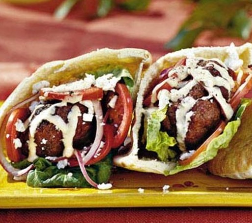 Give your ordinary hamburgers a Greek twist with some Greek seasoning, Tahini sauce and some feta cheese and put them in a pita round. Add some lettuce, tomato and red onion and enjoy!