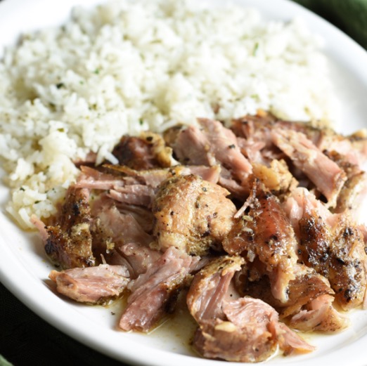This yummy, tender pork dish cooks all day in the slow cooker and is seasoned with delicious herbs and spices. Serve it with cilantro-lime rice and black beans, plain rice, in sandwiches or tacos.