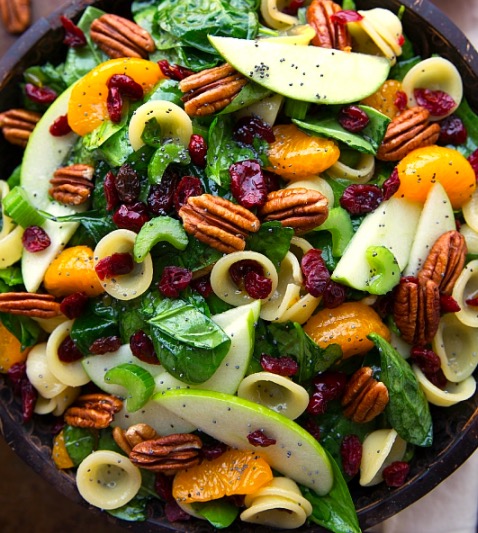 Change up that boring salad that you always serve and make this gorgeous salad with wonderful fall flavors instead. If desired, add a little purple onion or maybe some bacon or grilled chicken breast, to add some protein.