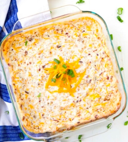 Remove from the oven; uncover; top with green onion and more cheese, for garnish.