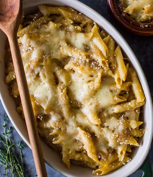 This is comfort food at its best. It's a perfect marriage of mac, cheese and French Onion soup, and makes a perfect, cozy dinner for the holidays.