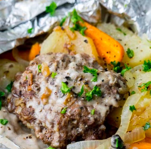 *The foil packs could be grilled at medium heat for about 45 minutes or until potatoes are tender and ground beef reaches 160 degrees.