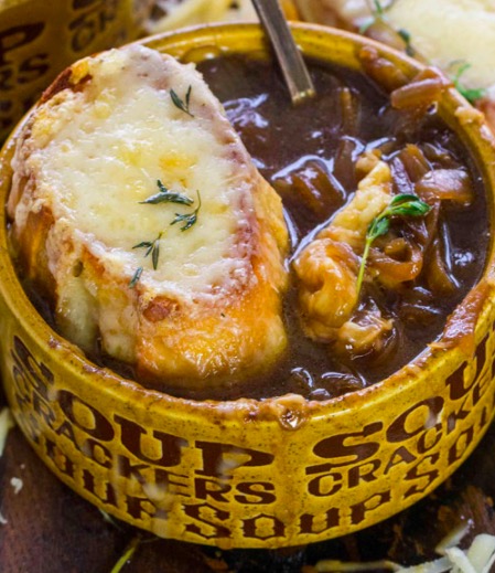 No one will believe that you made this French Onion Soup at home, it's that good. It's really simple to make since the slow cooker does all of the work. Make it on a day when you have a lot of time, because even though it is simple to do, it isn't quick.