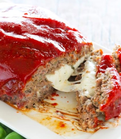 Change up your meatloaf just a bit to make it even better with gooey mozzarella cheese in the center and a yummy glaze on top. Yum!