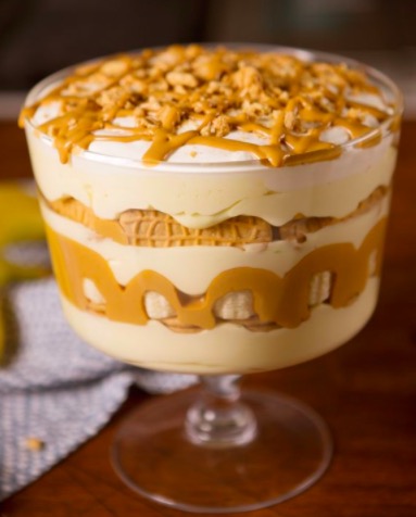 Get out that trifle dish to make the best trifle that you have ever had. It has 2 layers of peanut butter, banana slices and nutter butters.