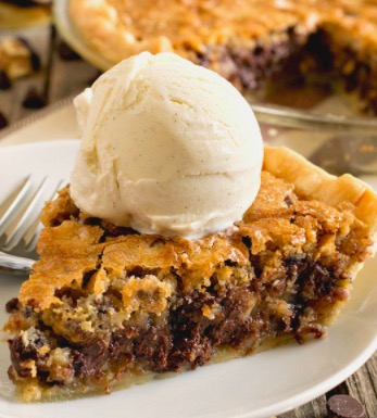Impress family or guests with this scrumptious, gorgeous pie with all of the classic flavors of Toll House chocolate chip cookies. It's incredibly soft and fudgy with a somewhat crackly top. Serve it warm with a scoop of vanilla ice cream on top, if desir