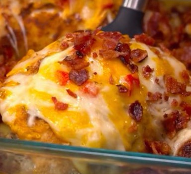 Four Cheese Bacon Stuffed Smothered Chicken Casserole