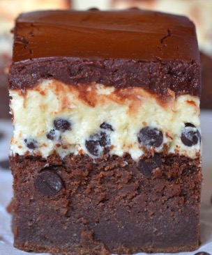 These brownies are rich and fudgey with a chocolate chip cookie dough and topped with a thick, yummy chocolate ganache.