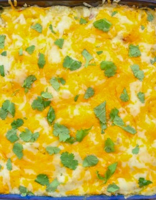 Scoop piping hot onto plates or cool for 15-20 minutes for a prettier slice of enchiladas. Serve with tortillas chips.