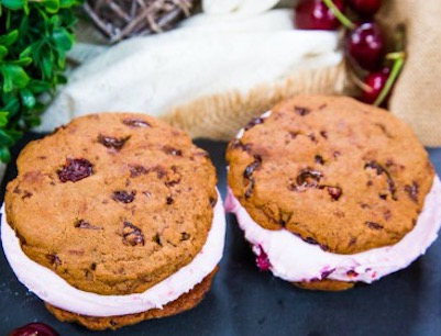 Chocolate Chunk Cookie and Cherry Ice Cream Sandwiches