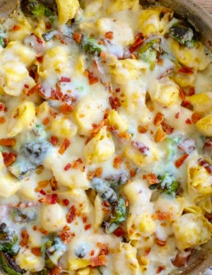 Cheesy Tortellini with Bacon and Brussels Sprouts