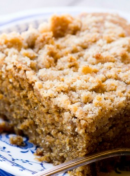 Spread the batter evenly into the prepared pan; evenly sprinkle the reserved crumbs on top. Bake for 50-55 minutes, or until a wooden toothpick inserted in the center comes out clean without wet batter clinging to it. (The baking time will vary depending on your pan and your oven.)