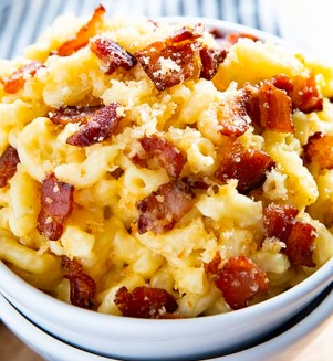This is a game changer for mac and cheese. Everyone knows that bacon makes everything taste better and it's true for mac and cheese as well. This dish is cheesy and cream on its own and has a bacon and Panko breadcrumb topping that is to die for.