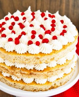 Place one of the cakes on a cake stand. Fill a piping bag with the frosting; attach Tip #4B. Hold the bag at a 90 degree angle and pipe little stars of frosting on top of the cake.