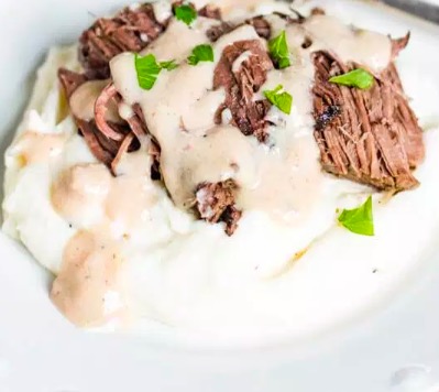 Serve the pot roast and gravy over mashed or boiled potatoes, rice or egg noodles.