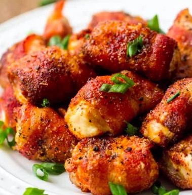 Cut each bacon slice in half or long enough to just wrap around each chicken piece. Wrap each piece of chicken in the bacon.