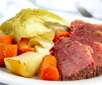Don't boil the flavor out of your corned beef. Instead, bake it in the oven with the typical cabbage, potatoes, carrots and onions and seasoned with the seasoning packet, brown sugar and Dijon mustard.